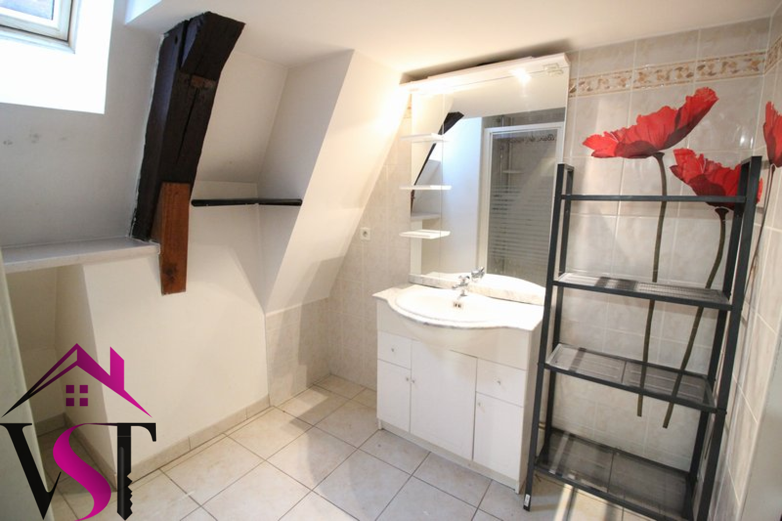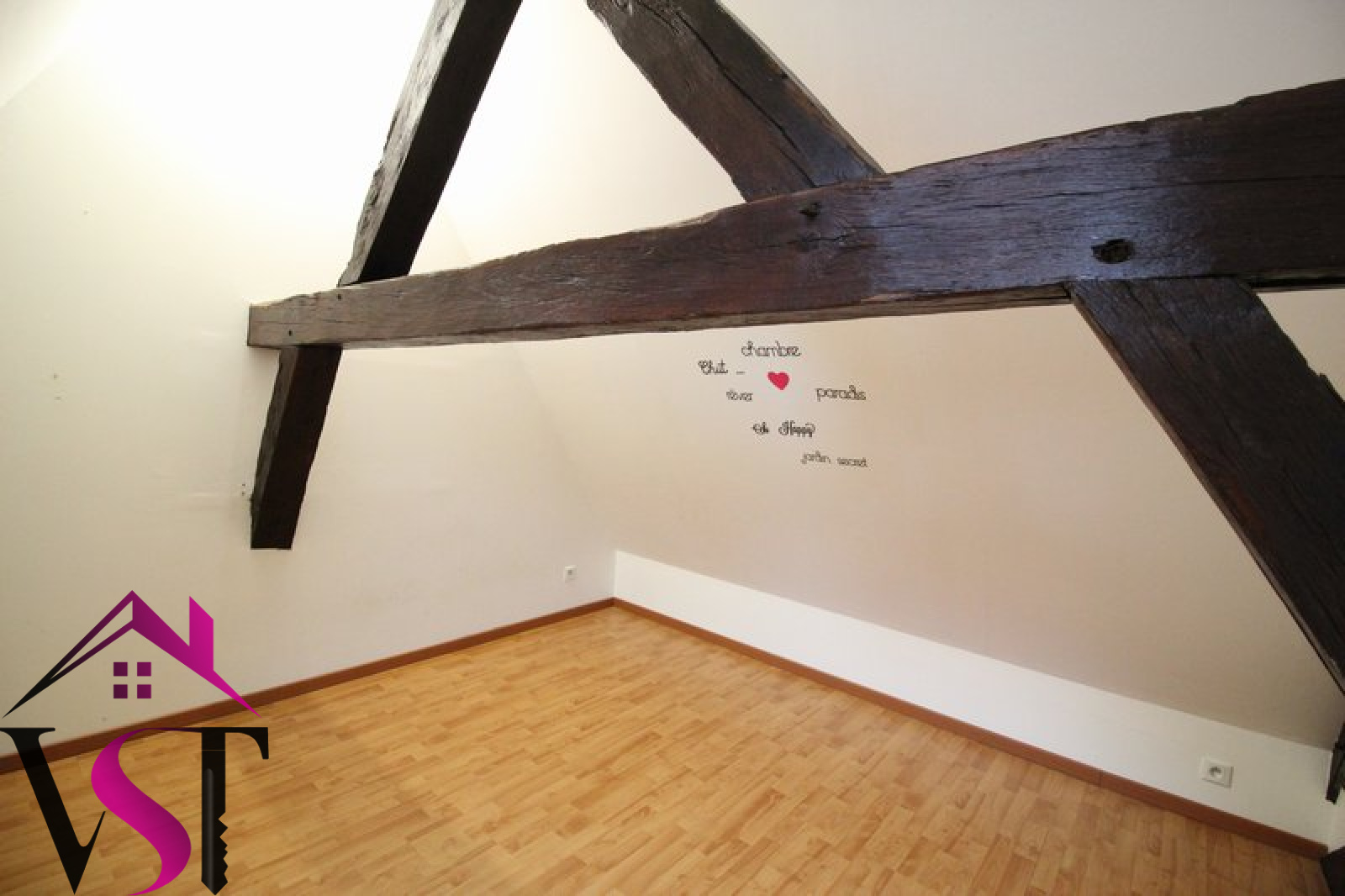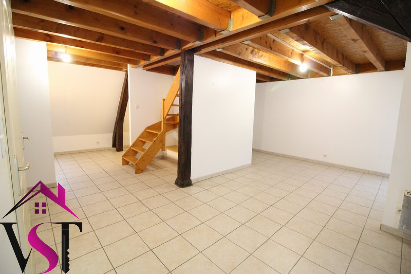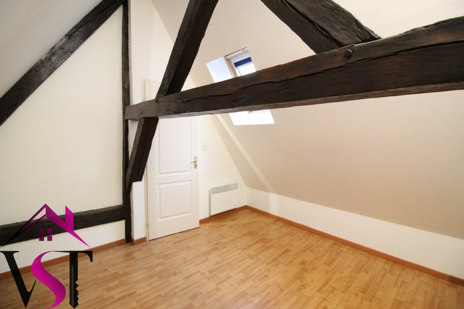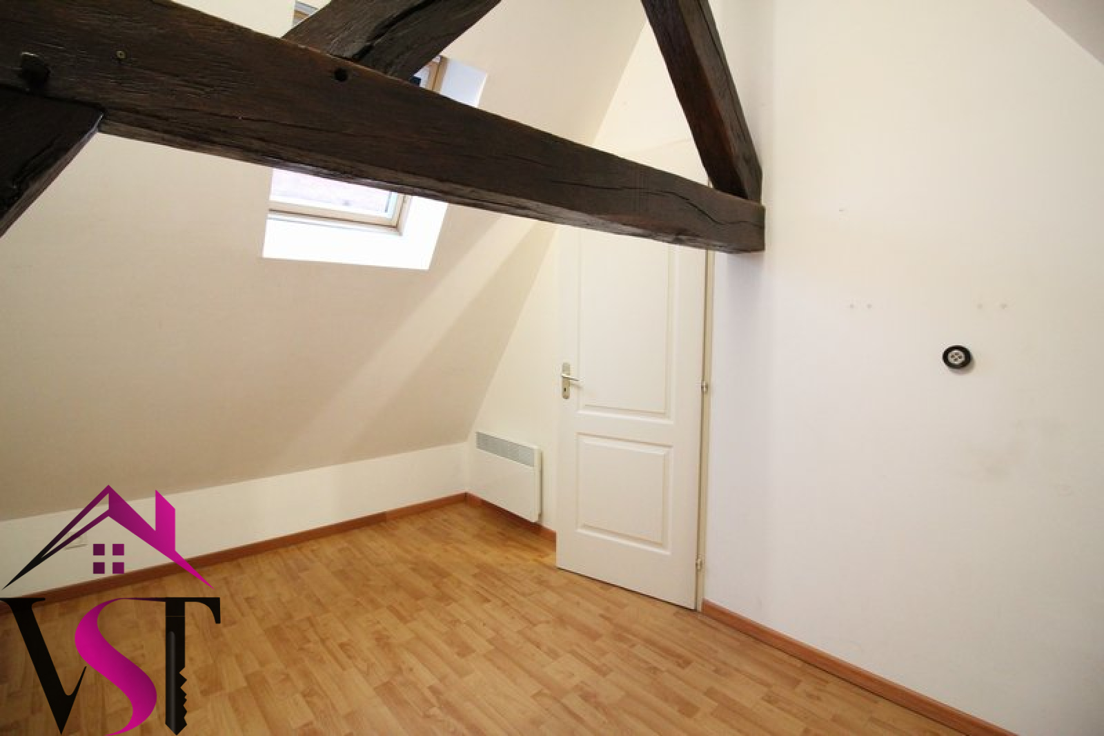 AUXONNE, centre ville. Appartement T3 au 2ème étage et en duplex avec poutres apparentes, de 74.46 m² au sol, comprenant cuisine équipée (hotte, plaques, four) ouverte sur séjour, salle d'eau et wc séparés. A l'étage, deux chambres mansardées.