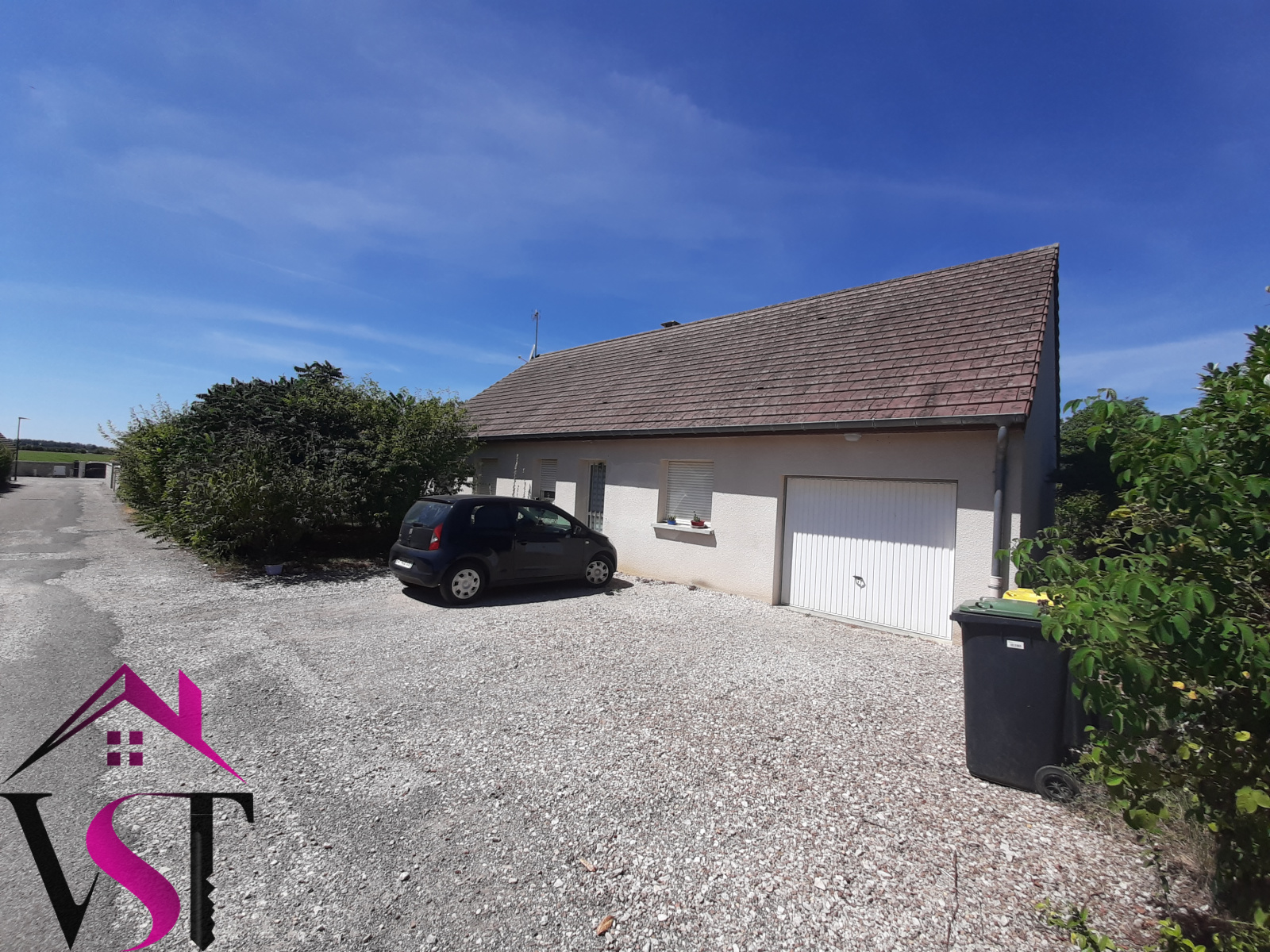 EXCLUSIVITE !!! A proximité d'Auxonne. Au calme, jolie maison de plain-pied, édifiée sur un terrain d'environ 797m², et comprenant entrée, cuisine aménagée ouverte sur salon-séjour avec cheminée insert et accès terrasse, 4 chambres, salle de bains, WC séparés, buanderie et dégagements. Garage 1 vl.
