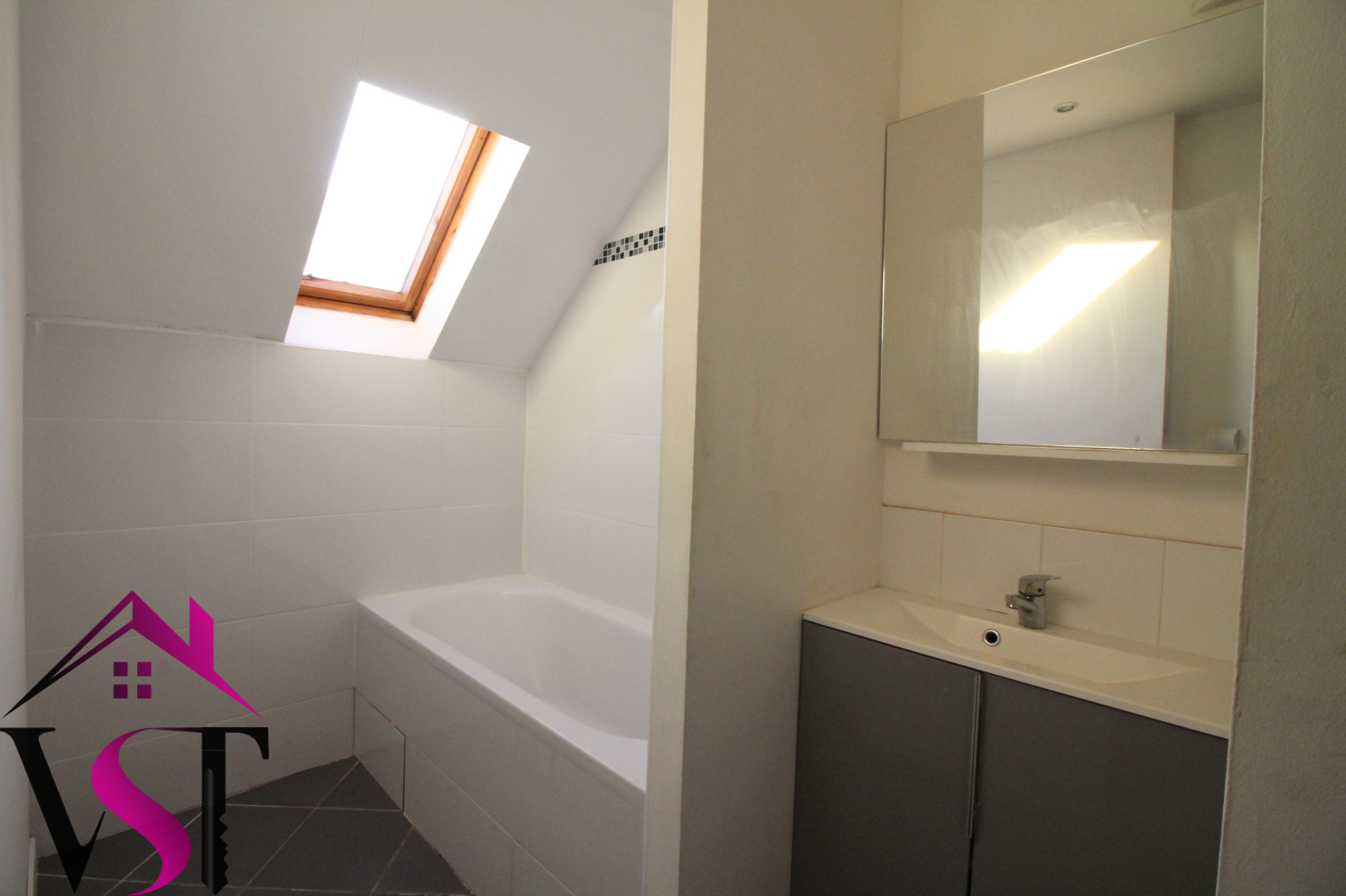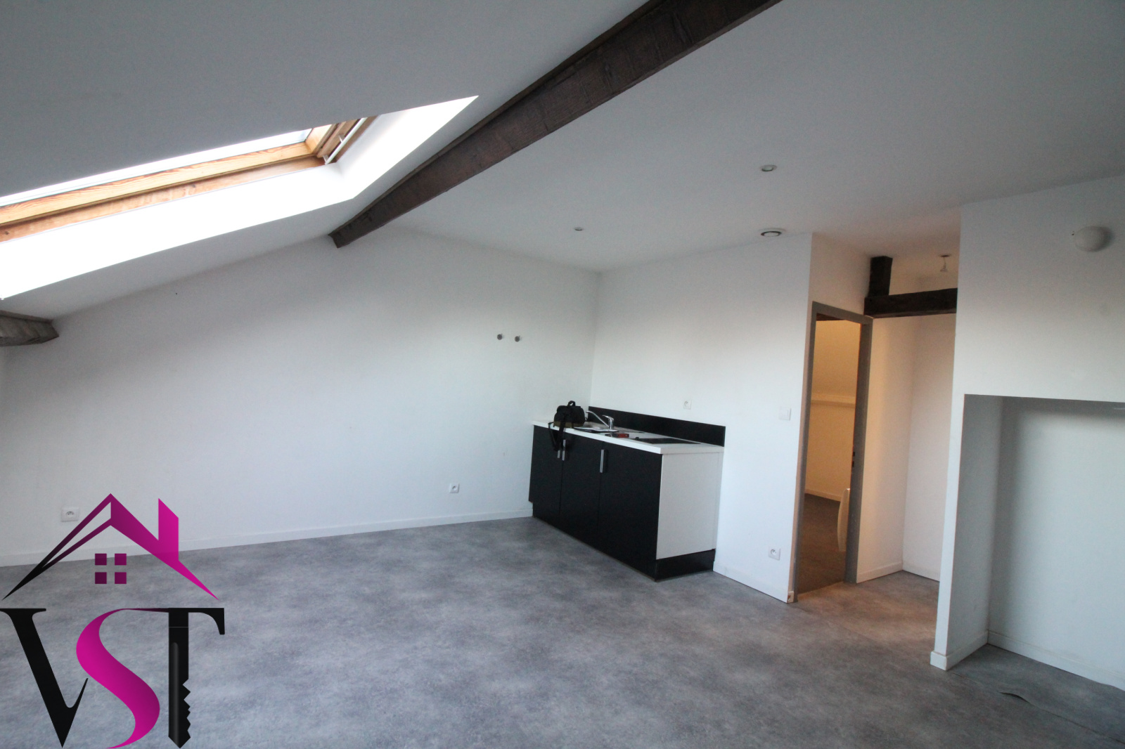 Appartement de type 2, au 2ème et dernier étage et comprenant coin cuisine semi-équipé ouvert sur séjour, une chambre, salle de bains et WC.