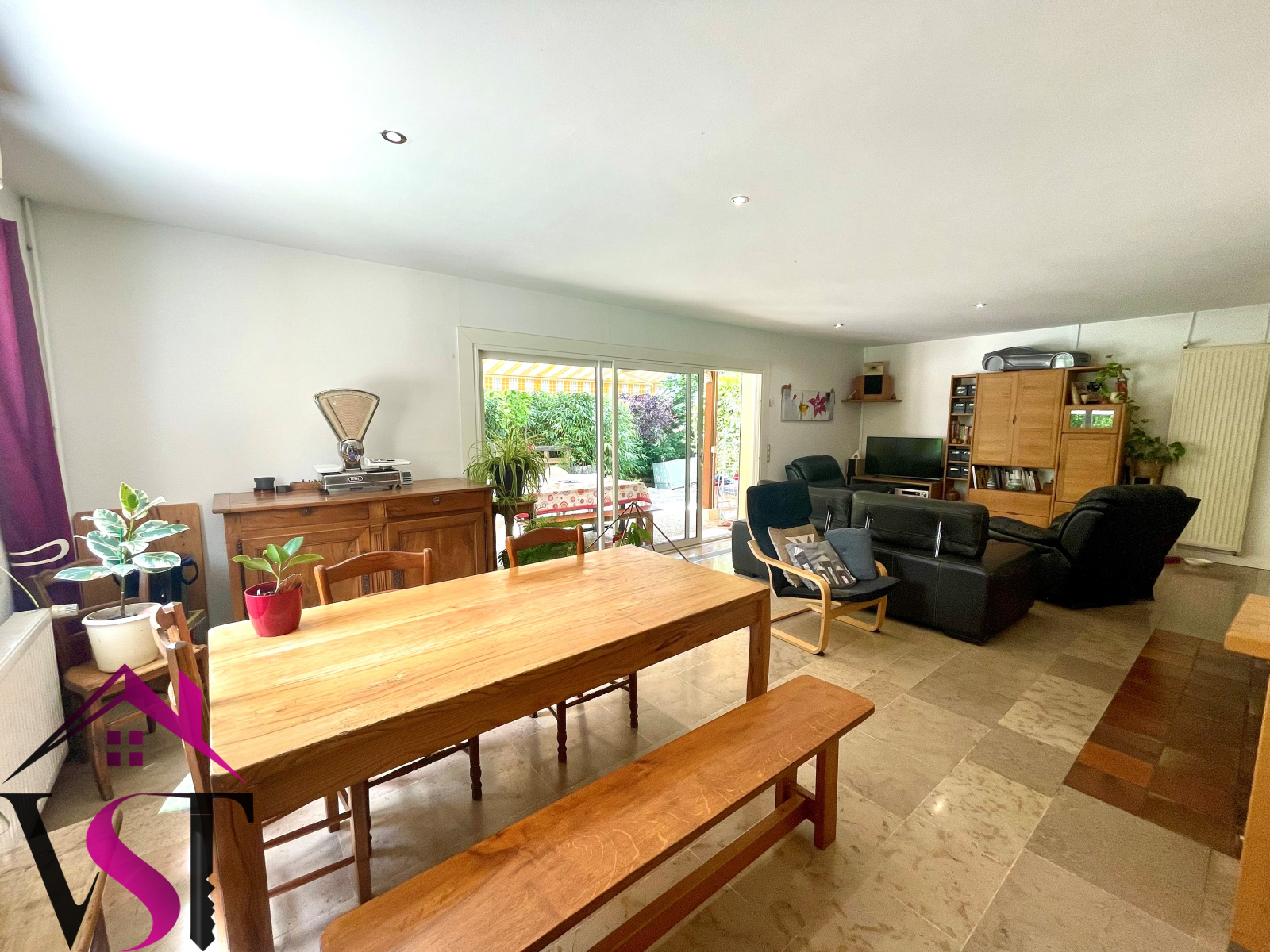A moins de 10 minutes de Dole et à proximité de l'entrée d'autoroute. Superbe maison de plain-pied, d'environ 136m² habitable et comprenant entrée, cuisine équipée ouverte sur vaste salon-séjour (environ 43m²) avec cheminée insert, trois belles chambres, un bureau (8.23m²), WC séparés et dégagements. Buanderie et garage.